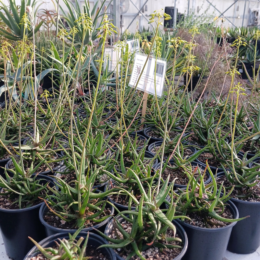 Aloe bakeri, commonly known as Baker Aloe or Dwarf Aloe, is a clustering succulent native to southeastern Madagascar. It forms dense clumps of slender, fleshy leaves that are green to reddish-brown and heavily mottled with white spots, featuring toothed margins. Reaching up to 8 inches tall and 16 inches in diameter, it produces tubular flowers in red or orange hues during the summer, attracting birds and pollinators. Native to rocky hills at low elevations, it thrives in well-drained soil and full sun to light shade, tolerating drought once established. Hardy in USDA zones 10a to 11b, it may require winter heat in temperate regions. Admired for its attractive foliage and showy flowers, it's suitable for container planting or small pockets in succulent gardens, adding charm to xeriscapes, rockeries, and desert landscapes.