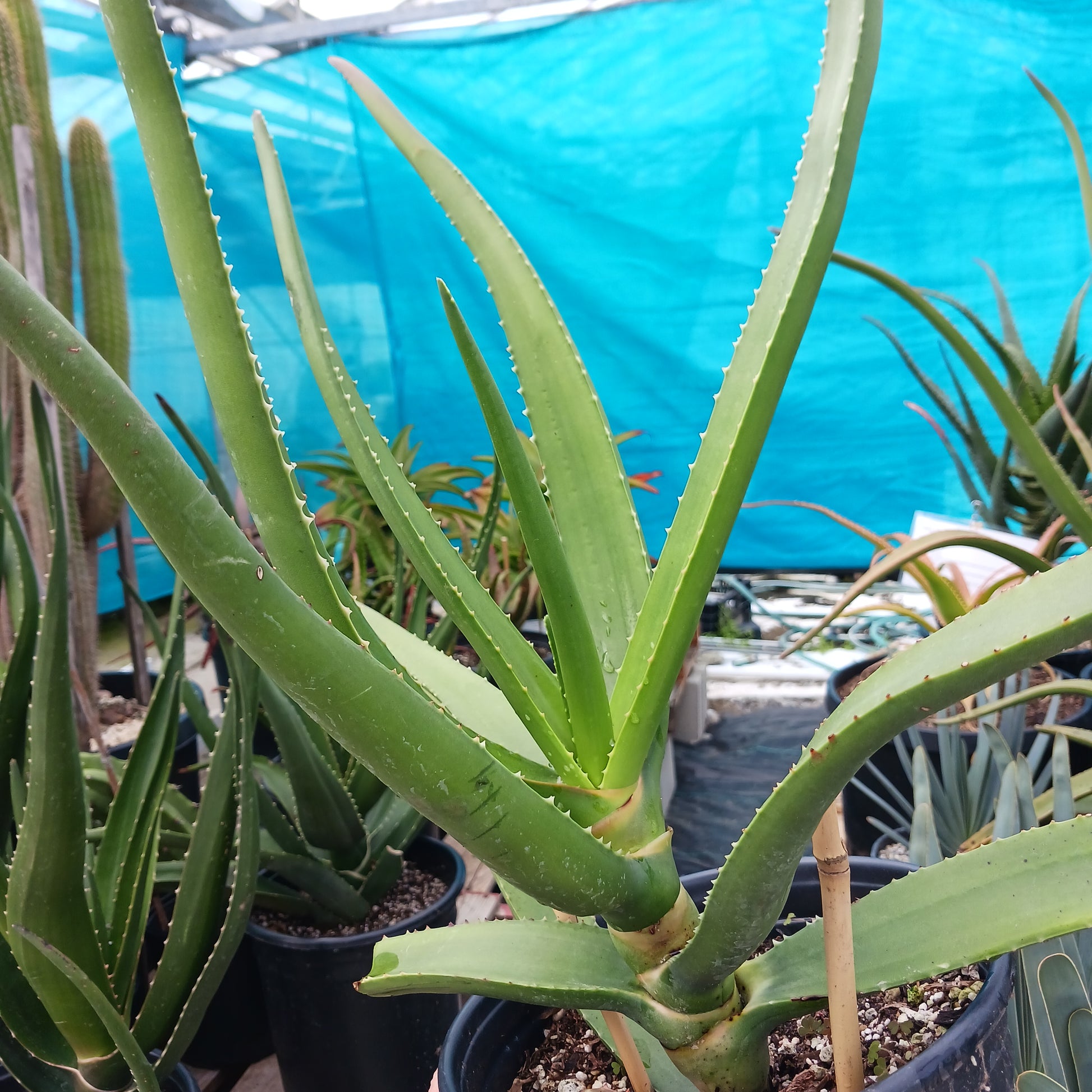 Aloe eminens "Koko Crater" is a tree aloe native to Somalia, Africa, known for its striking appearance. It features an erect trunk with irregular branches and upright slender stems holding rosettes of narrow, slightly recurved leaves. This evergreen succulent can reach heights of 10-16 feet and widths of 6-8 feet, with leaves around 18 inches long. During late fall and winter, it produces deep rose-colored flowers arranged in tight racemes on 1-foot-tall branched inflorescences. Endemic to Somalia, it grows on rocky limestone slopes and forested ravines in the northern Al Madu Mountains near Erigavo, thriving in full sun and well-drained soil. Once established, it requires minimal irrigation and is hardy down to 30-32°F, making it suitable for frost-free gardens, particularly in California. This tree aloe is prized for its ornamental value and attracts wildlife such as birds due to its flowers, making it a desirable addition to frost-free gardens and a sought-after plant for collectors of tree aloes.