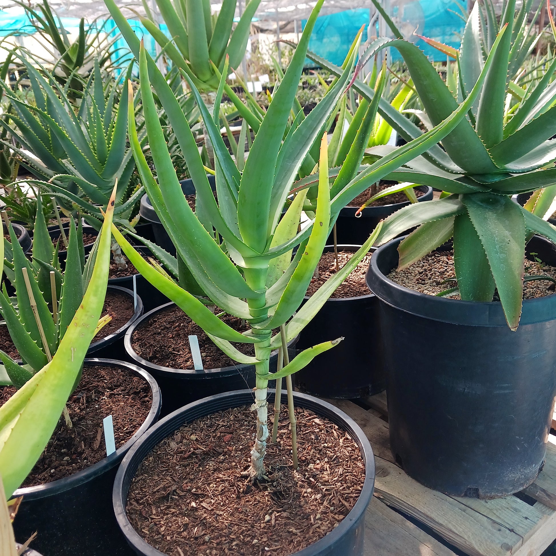Aloe thraskii is an impressive architectural feature, with its soaring height, olive green recurved leaves, and environment-inspired design. Its U-shaped cross section and tiny reddish-brown teeth make it easily recognizable. It thrives in coastal areas, but also grows large in areas with wet Winters. It can be planted in raised beds and terraces or used to create an impressive garden backdrop. It also attracts many bees and birds with its flowers.