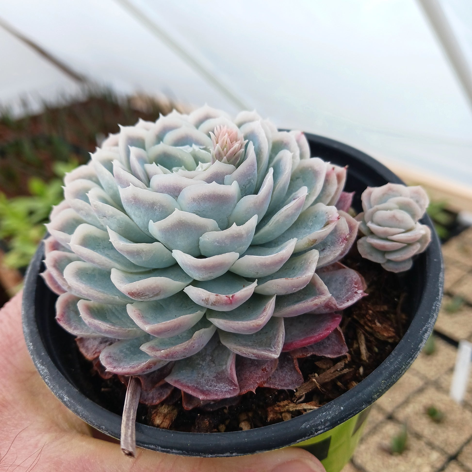 Echeveria elegans, also known as the "Mexican Snowball", is a beautiful succulent that is perfect for adding a touch of greenery to any indoor or outdoor space. This 4 inch pot is the perfect size to showcase the stunning rosette of green and white leaves that will grow to about 4 inches in diameter. Echeveria elegans is a low maintenance plant that requires bright indirect light and infrequent watering. It is also tolerant of a wide range of temperatures, making it a great option for both indoor and outdoor environments. This plant will thrive in a well-draining soil mix, and can be fertilized during the growing season to promote healthy growth. Add the Echeveria elegans to your collection today and enjoy its unique beauty for years to come!