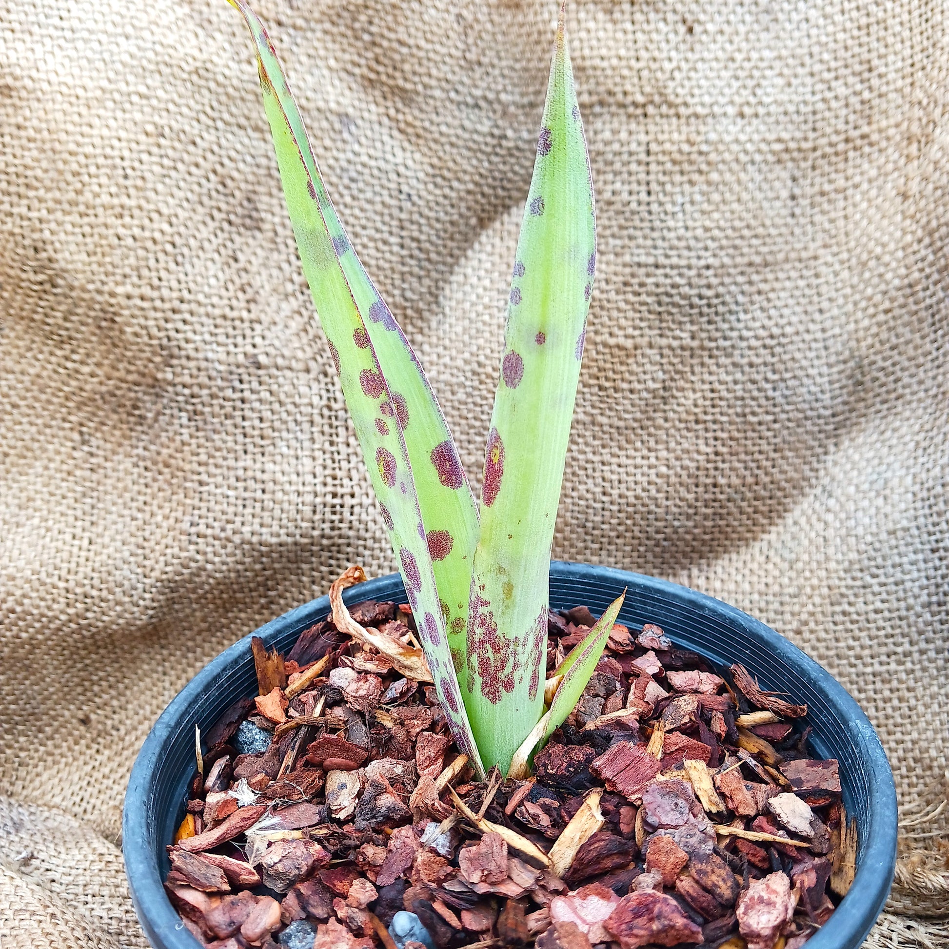 A stunning deciduous succulent perennial in both foliage and flower. A native of South Texas with low growing, fleshy rosettes of succulent blue-green toothed leaves with maroon colored spots. The cream to greenish-white flowers appear atop 6 ft bloom spikes in late Spring.