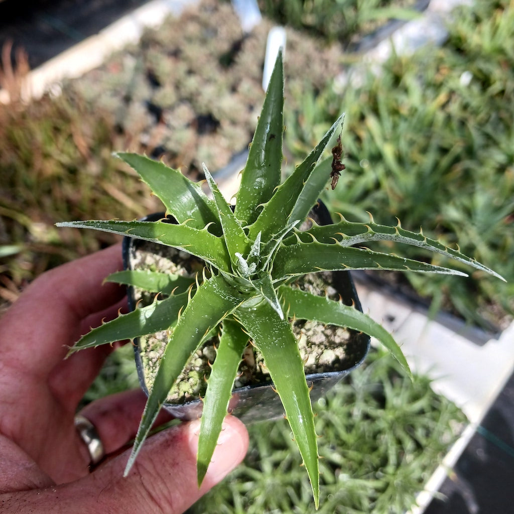 Puya coerulea var. coerulea, also known as Silver Puya or Pink Torch Puya, is a succulent from the Bromeliaceae family, native to Chile. This large, rosette-forming plant is valued for its silver-white foliage and dark blue-purple flowers, thriving in arid environments and adding a distinctive silvery hue to gardens. Silver Puya forms a large rosette that can reach 2-3 feet tall and spread 6-8 feet wide. The narrow, slightly recurved leaves have sharp teeth along the margins and are silver-white due to powdery trichomes. In late spring and summer, it produces silvery spikes bearing dark blue-purple flowers with orange anthers, creating a vibrant display. Native to central Chile, it grows on rocky outcrops in semiarid areas between 1,600 and 6,500 feet in elevation. The genus name "Puya" is derived from the Chilean term for Puya chilensis, and "coerulea" refers to the dark blue flowers. This plant has been in Southern California since the mid-1960s and was correctly identified by Puya specialist Rachel Schmidt Jabaily. Silver Puya thrives in full sun with low water needs, ideal for coastal gardens with well-drained soil. It is hardy down to 18°F but prefers to be kept dry during cold weather. In warmer regions, mid-day shade can be beneficial. It is slow-growing, taking 4-5 years to flower, and can be grown in large pots for easier winter protection. Suitable for USDA zones 9 to 11, it is hardy to 20-25°F, with mature plants surviving down to 18°F if kept dry. This plant is excellent for xeriscapes, rock gardens, and succulent collections due to its silver foliage and vibrant flower spikes. It should be planted away from high-traffic areas due to its sharp leaves and also makes an excellent container plant for easier protection in colder climates.